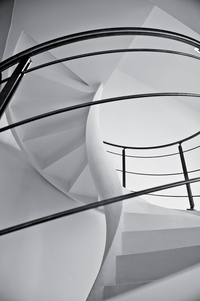 I volumi delle due case si trasformano in loggia verso la valle, creando un diaframma tra interno ed esterno e permettendo, un corretto ombreggiamento delle zone completamente vetrate riparate dall’aggetto della loggia. I due nuclei sono suddivisi tra i due piani in maniera canonica, zona giorno al piano terra e zona notte al piano primo. I due livelli sono collegati da un doppio volume con la scala a chiocciola in un’abitazione e lineare nell’altra.