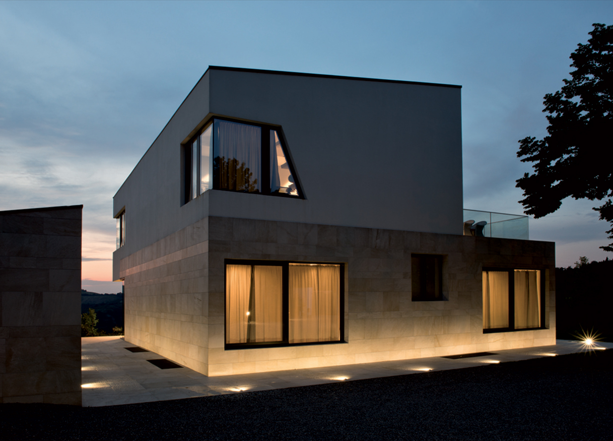 Nella località di Rastignano, situata sulle pendici di una collina Bolognese, la casa è stata concepita per ospitare due nuclei familiari indipendenti, presentandosi quindi come due volumi distinti.